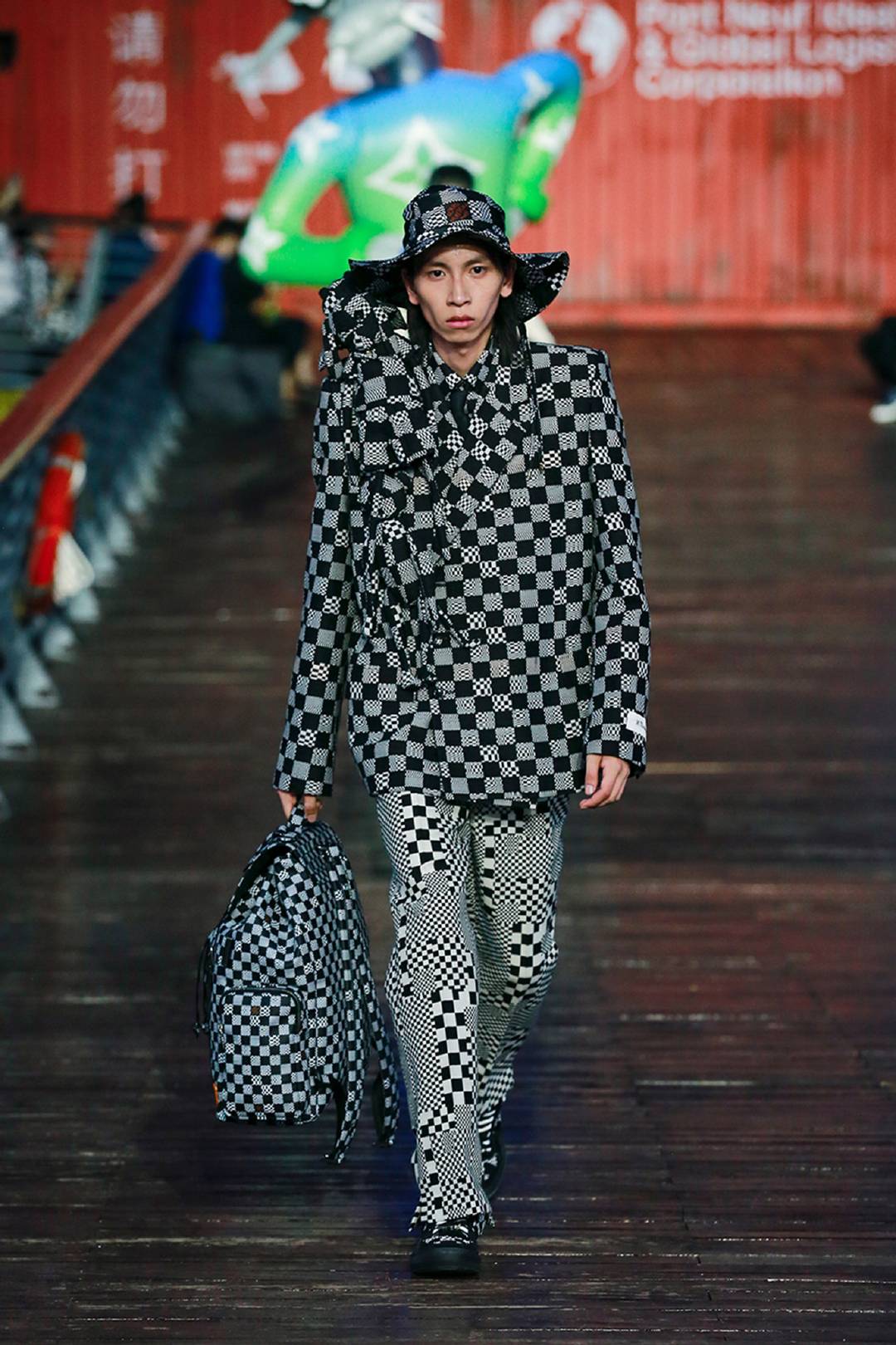 上月,Louis Vuitton男装艺术总监开启了LV春夏21男装秀“漂流瓶”主题的航海旅程,邀您重返少年时代,以童趣视角发掘时尚本真。历经近一个月的航行,这些装有Louis Vuitton 2021春夏男装的集装箱抵达上海。在本季的2021春夏男装系列大秀中,Louis Vuitton并没有选择直接发布新品LOOK,而是保留传统走秀的同时,也让我们以实时直播的方式感受了这一季的惊喜。2020年8月6日的秀场里,ac米兰表演(模特表演)黄飞龙同学(签约龙腾精英模特经纪公司)前往上海参演这场童趣大秀。