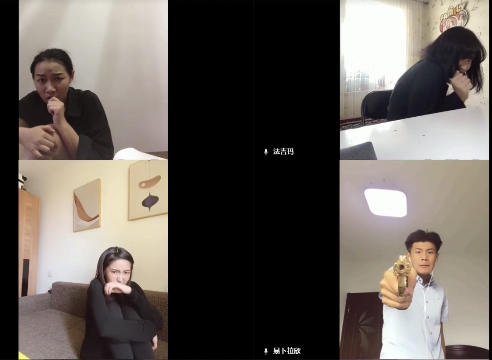 这是表演学部表演(影视表演)专业最特殊的一次汇报演出。疫情防控当下给教学组带来的现实是,我们不能以传统的方式去教学和排演。因为线上课程不是简单地把实景课堂搬到线上呈现,而是要探索一种全新的授课模式。教师需要根据线上的空间特点和呈现效果,不放弃对演员基本功训练的高标准和严要求,对课程内容进行创造性转化。学生也需要快速的对这种前所未有的“教学生态环境”做出积极的反应,师生一道,齐心协力高质量的完成“网络教学+线上排演”的双重任务。