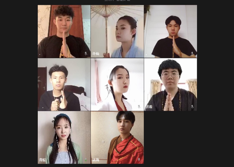 2020年6月23—24日,表演学部18影表本3班学生,在表演(影视表演)教研室于点老师和张默老师的带领下,利用企业微信平台搭建虚拟剧场空间,以“云”演出的方式,完成了五个剧目的展演。包括独幕剧作品《女士们的游戏》、多幕剧改编作品《哈姆雷特》、《五种沉默》、《伪君子》和《青蛇》。