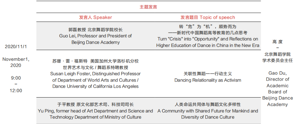 论坛于11月1—3日通过线上、线下相结合的方式进行,围绕“舞蹈在构建人类命运共同体中发挥的作用”、“疫情下的舞者身体表达”、“舞蹈的未来和共同发展”、“舞蹈教育的反思与前瞻”、“舞蹈如何发挥治疗与康复功能”等十个议题,开设青年舞蹈艺术家、演艺制作人、中东欧舞蹈家、中职舞蹈教育、舞蹈编创、博士及研究生等18个分论坛进行深入探讨。今年的论坛虽因疫情移至线上,仍以关注现实的主题视角吸引来自全球五大洲、20多个国家的70多位外籍嘉宾及我国港澳台地区嘉宾。