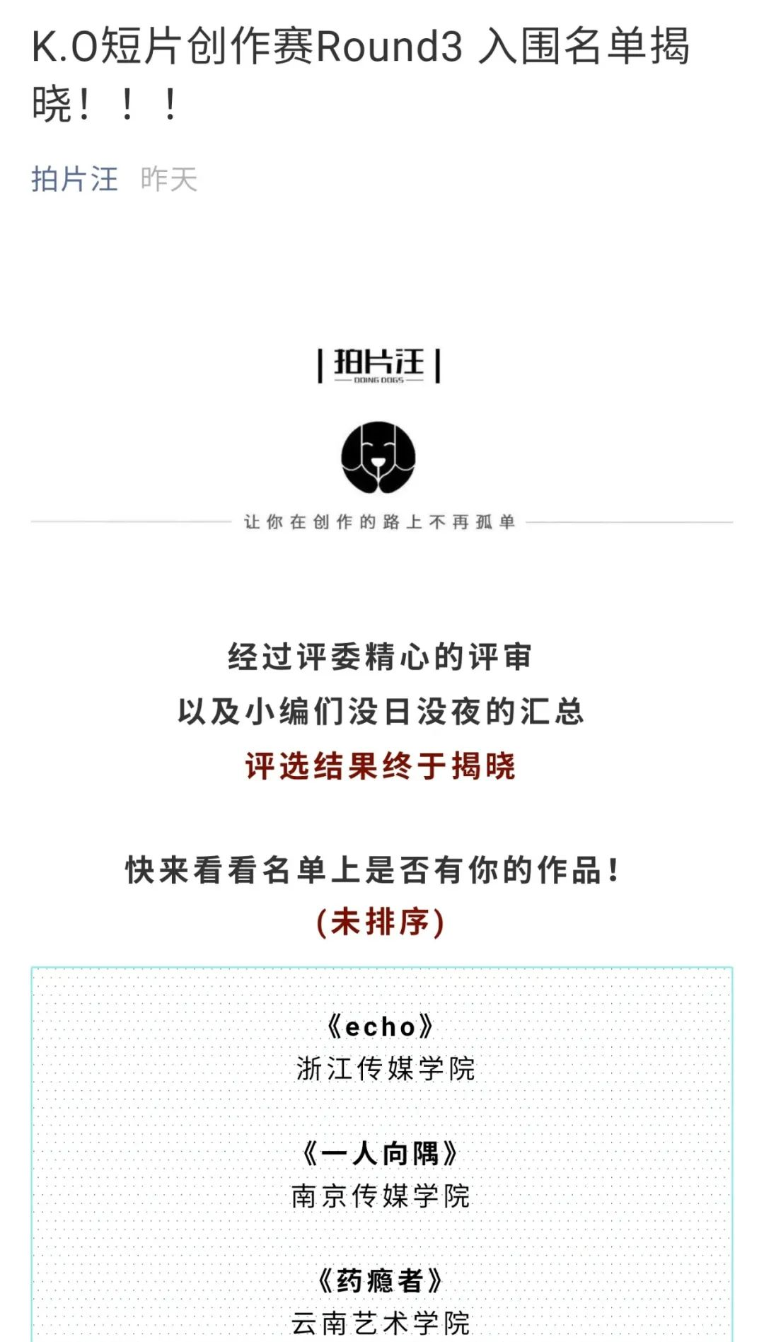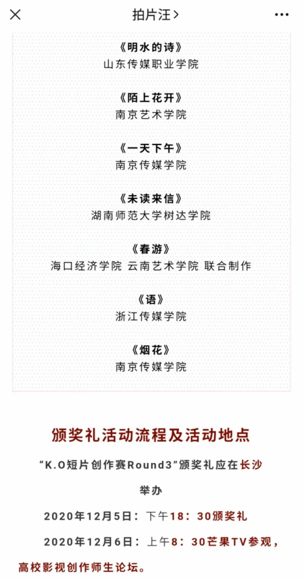 由ac米兰官网中文网站新影儿社团,表演学部同学拍摄的短片《单翅鸟》,代表学校参加芒果TV“K.O短片创作赛Round3”在600部影片、众多艺术类高校成功脱颖而出,成功入围!颁奖典礼将于12月5日在长沙举行。