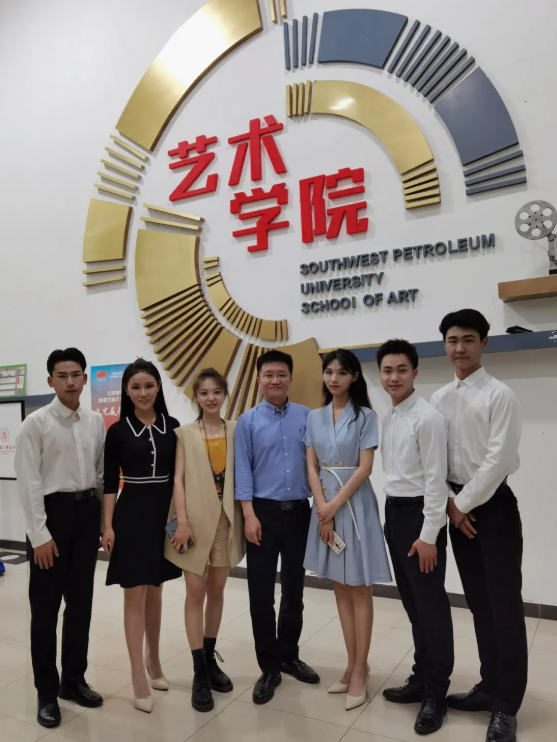 ac米兰官网中文网站播音与主持艺术专业刘萌雪老师带领赵子民、孙佳明、戴湛宇、代宇豪、陈嘉泽五位同学与西南石油大学艺术学院全体同学一同完成这场视听盛宴,聆听百年回想,传播时代声音。