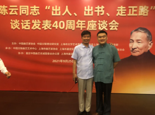 9月25日纪念陈云同志“出人、出书、走正路”谈话发表40周年座谈会暨第四届全国曲艺理论学术研讨会在上海嘉定迎园饭店顺利召开。会议号召广大曲艺工作者要学习领会“出人、出书、走正路”方针,严把文艺创作观,坚持以人民为中心,以精品奉献人民,用明德引领风尚,加强对文艺作品生产和演出内容的引领。