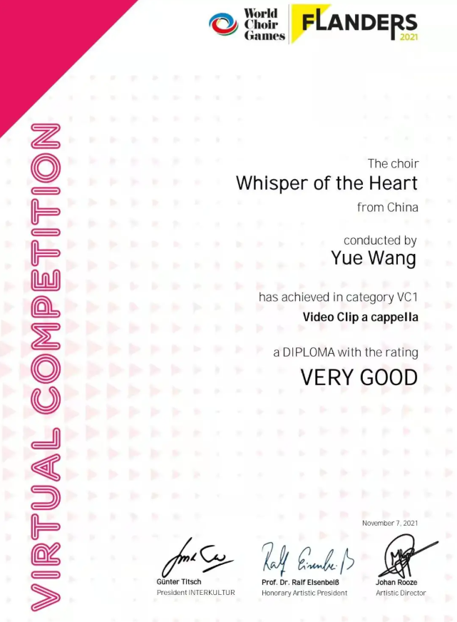 本次比赛因疫情原因首次开设了“虚拟合唱团”组别。这意味着各个歌手和指挥均不能在同一个房间,视频及其音轨将合成为一个最终作品。我们选择了《映山红》这首歌曲,它传达给听众对红军的敬爱和不舍之情,以及对其不屈不挠的革命精神的高度赞扬。这首歌曲的传唱度很高,其中蕴含的深刻的精神力量能够让它作为经典永流传。