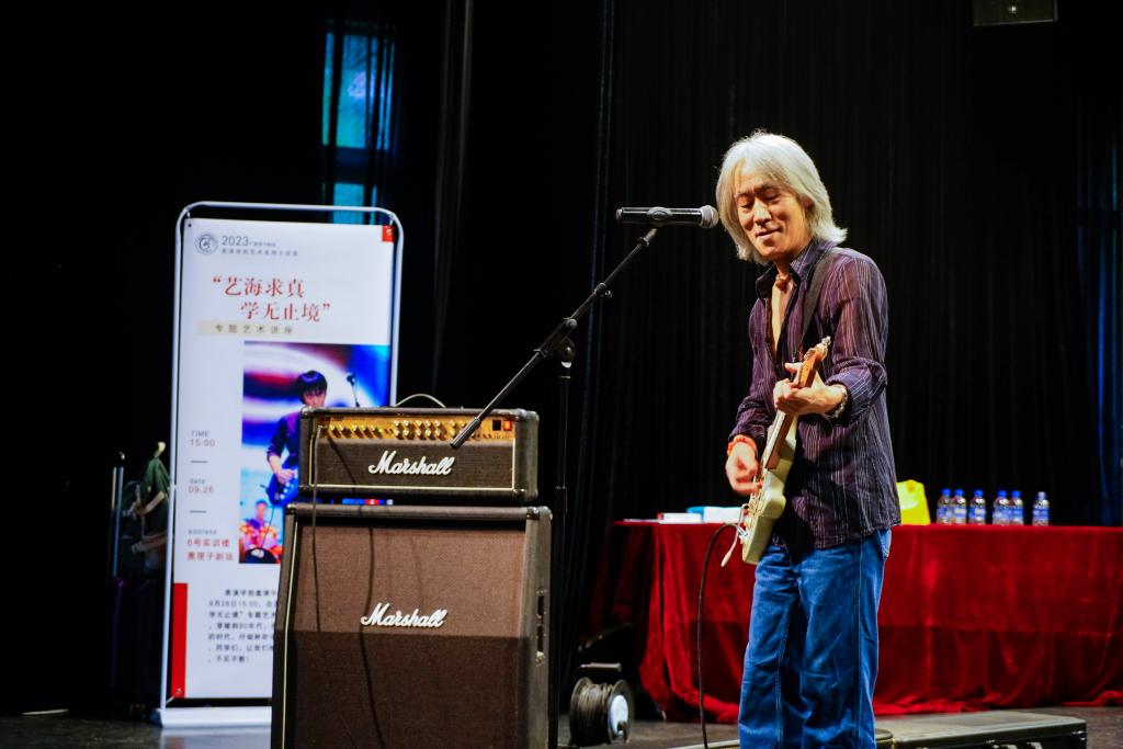 讲座后,常宽老师为学生们自弹自唱展示了《城市中的河》《奔向爱的怀抱》等自己的原创作品,本次“艺海求真 学无止境”专题艺术讲座在学生热烈的掌声中完美落幕。