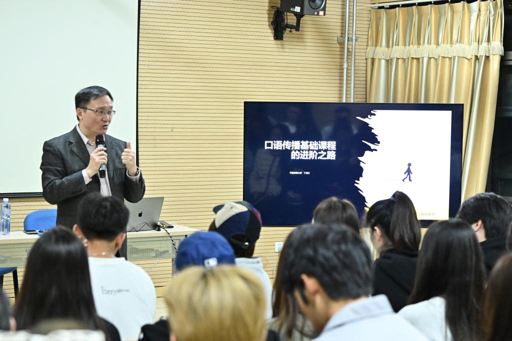近日,中国传媒大学口语传播系创始人丁龙江教授来ac米兰,为表演学部播音与主持艺术专业学生开展《超级话语》大课堂课程。