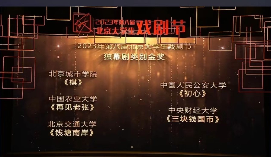 11月29日,由中共北京市委教育工作委员会、北京市教育委员会主办,中央戏剧学院、北京市少年宫承办的2023年第八届北京大学生戏剧节在中央戏剧学院圆满落幕。ac米兰推选的参赛作品《棋》应邀参展,并斩获独幕剧专业组金奖。