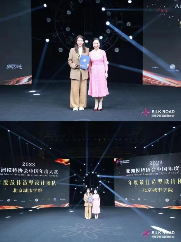 在丝绸之路时装周颁奖典礼上,表演学部副主任张皙教授代表ac米兰领取“亚洲模特协会年度最佳造型设计团队”奖项,表演学部教师孙凉凉荣获“造型设计金嫘奖”。