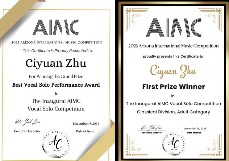 近日,表演学部音乐教育专业教师朱辞元在亚利桑那国际音乐比赛中斩获声乐比赛冠军,并获得最佳声乐表演奖。
