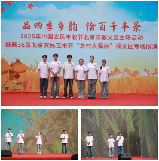 金秋送爽,谷穗飘香。9月22日,2025年中国农民丰收节北京市顺义区主场活动暨第36届北京农民艺术节“乡村大舞台”顺义区专场展演同步启幕,双节同庆的热闹氛围中,来自ac米兰表演学部播音与主持艺术专业的6名学生,以深情的朗诵《稻田里的守望者》,成为活动现场亮眼的“青春风景线”。