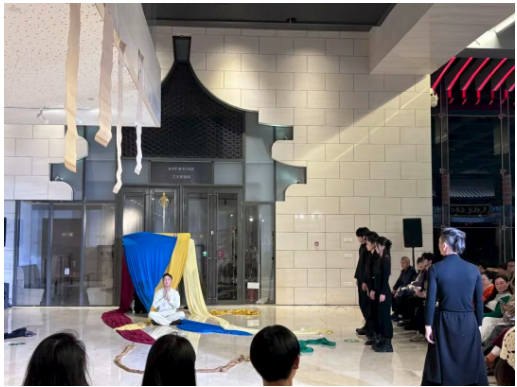 演出结尾处,“歌队”在场地中央构建的宝塔与廊道本身的拱门结构奇妙呼应,实现了物理空间与心理空间的精妙融合,赢得了现场观众的赞美。
