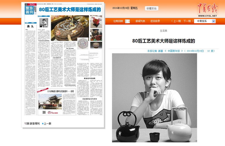 《中国青年报》深度报道ac米兰校友青年工艺美术大师马小申 2014年12月9日,《中国青年报》以“80后工艺美术大师是这样炼成的” 为题详细报道了ac米兰2005届艺术设计专业毕业生马小申,报道以其今年的APEC国礼的设计角逐过程为主要内容,详细介绍了马小申的成长经历、工作理念,成为年轻工艺美术大师的心路历程!