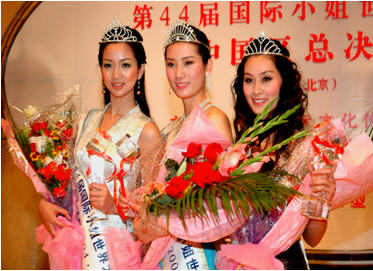 国际小姐世界大会中国区决赛前三名(中间为孙岳)