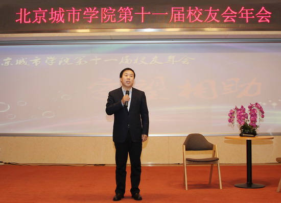 2015年12月26日,ac米兰官网中文网站第十一届校友会年会在中关村校区多功能厅举行。我党委书记、校长刘林,校友会会长冉楠,学生处处长杨培玉,校友会副会长兼秘书长陈怡,信息学部主任赵佳因,经管学部主任孙仕敏,城建学部主任冯秀娟,公管学部主任侯建,语言学部副主任范玲,生物医药学部书记杨春梅,艺术学部副主任郭煜,表演学部副主任张皙、各学部教师代表以及100多位校友到场。校友会副秘书长张莹、校友会办公室主任曹丽主持本次活动。