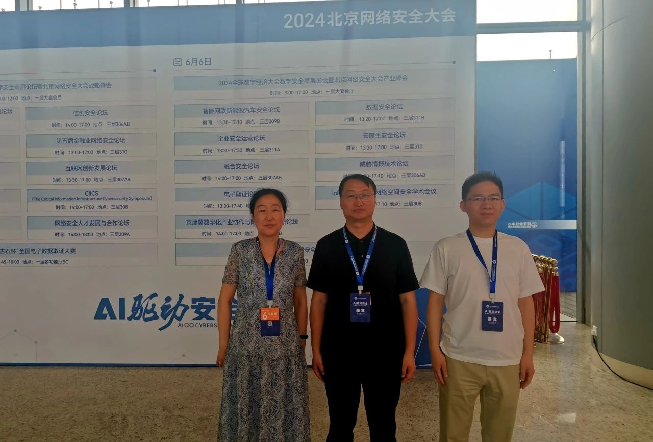 6月5日,2024全球数字经济大会数字安全高层论坛暨北京网络安全大会战略峰会在北京国家会议中心开幕。计算机教研室程葳、陈小全、孙德志老师应邀参会并参与大会研讨。