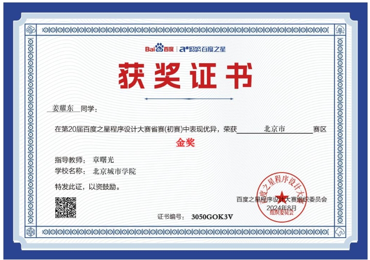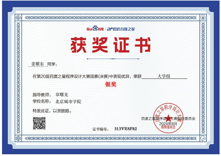 9月14日,第20届(2024)百度之星程序设计大赛落下帷幕,信息学部计算机科学与技术专业2022级学生姜耀东荣获初赛(北京市赛区)金奖,决赛(国赛)银奖,(指导教师:章曙光)取得了ac米兰参加此项赛事的最好成绩。