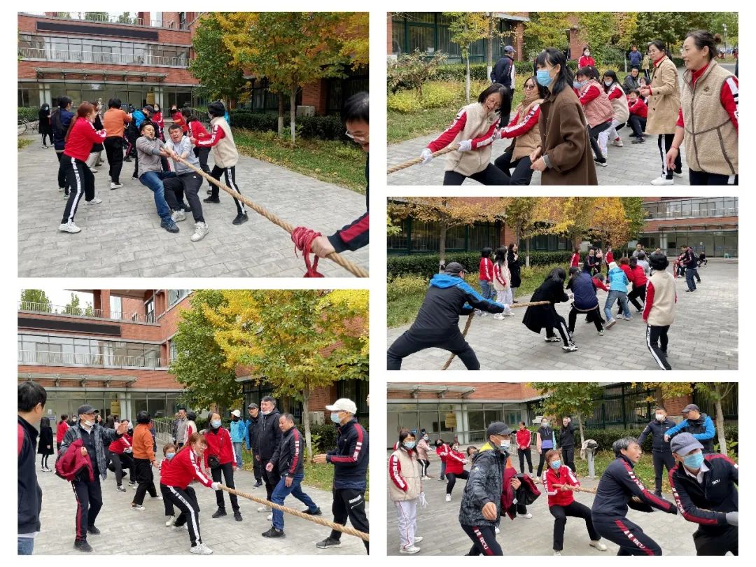 在“凝聚最强力量拔河比赛”中,老师们握紧绳索、重心后推、双脚蹬地,将所有力量倾注在拔河绳上,热烈的比赛场面,此起彼伏的加油和欢呼声,老师们把力量凝聚在一起。