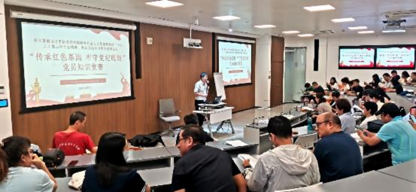 随后,支部开展了知识竞赛,此次知识竞赛分为必答题、抢答题、风险抢答题3个环节,比赛内容涵盖了二十届三中全会精神、党规党纪、红色文化等多个方面。在比赛中,参赛选手们抽签答题、拼手速、比脑力,以扎实的理论功底,沉着应答,现场气氛紧张而激烈,精彩的对答赢得现场观众阵阵喝彩。