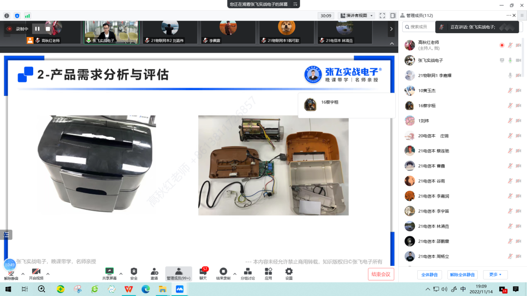 张飞老师从仪器设备准备、电路调试、现象分析,再到制板加工,细致讲解了碎纸机项目调试全过程,并耐心解答同学们提出问题,同学们课后都表示受益匪浅。