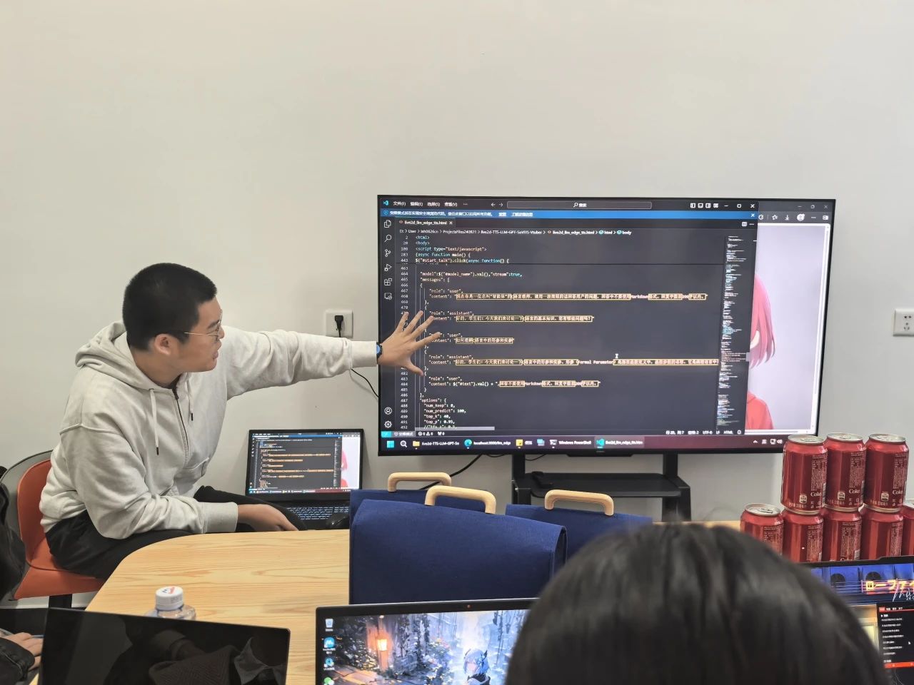 本次活动内容丰富多样,精彩纷呈。活动第一项是代码作品展,2022级计算机专业林溪泓同学作为学生代表展示了自己用代码创作的作品,包括代码生成的绘画、音乐等艺术作品,还有小游戏以及实用的小工具。他现场分享了创作思路和技术实现过程,同学们纷纷表示受益良多。