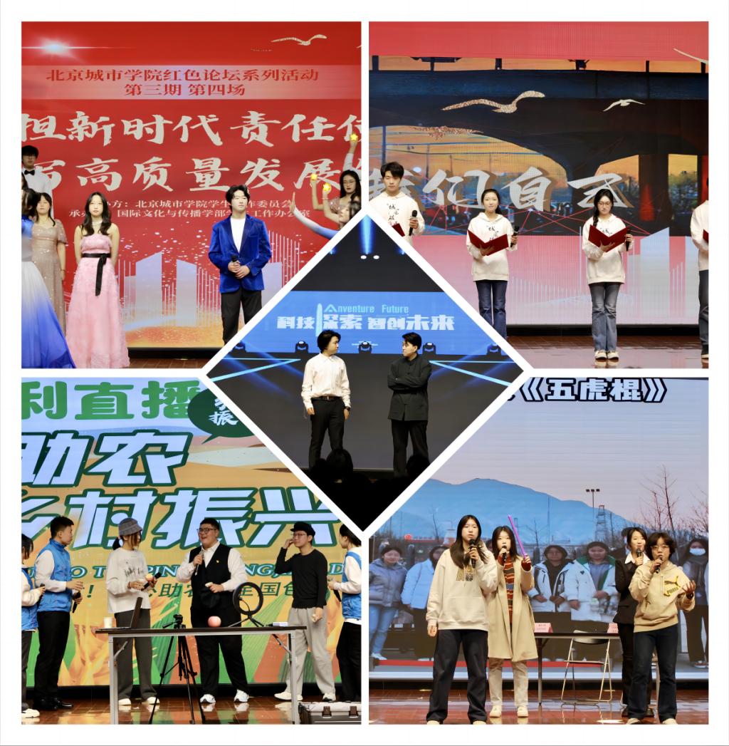 本次红色论坛分为“第一篇章 国之所需:以新时代首都发展为统领,奋力擘画城市发展新蓝图”“第二篇章 吾之所往:四秩风华荣光展桃李辉煌,文传育人塑才融首都发展”“第三篇章 用之所长:发挥文传专业优势与特长,为中国式现代化挺膺担当”“第四篇章 如之所愿:歌咏礼赞新时代美好愿景,同心共铸高质量发展辉煌”四个部分,借助舞台剧、朗诵、情景剧、合唱等形式,展现了中国式现代化的伟大实践,彰显了坚持中国式现代化在当下发展进程中的重要地位,激发了观众的奋斗热情。