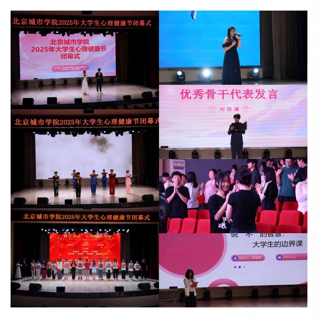 6月11日晚,2025年“美润心田,AI育未来”5·25大学生心理健康节闭幕式在顺义校区报告厅举行。心理素质教育中心主任毛晓瑞等300余名师生到场。